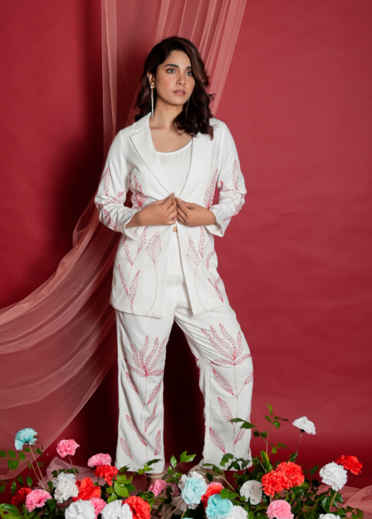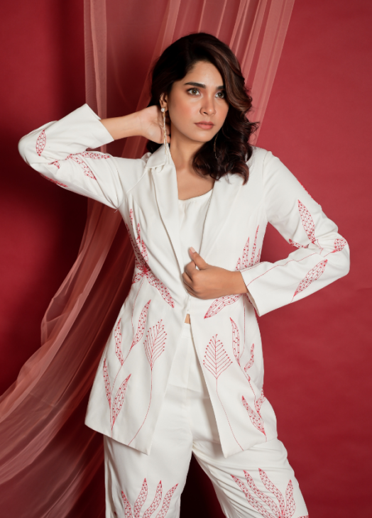 White Embroidered Coord Set