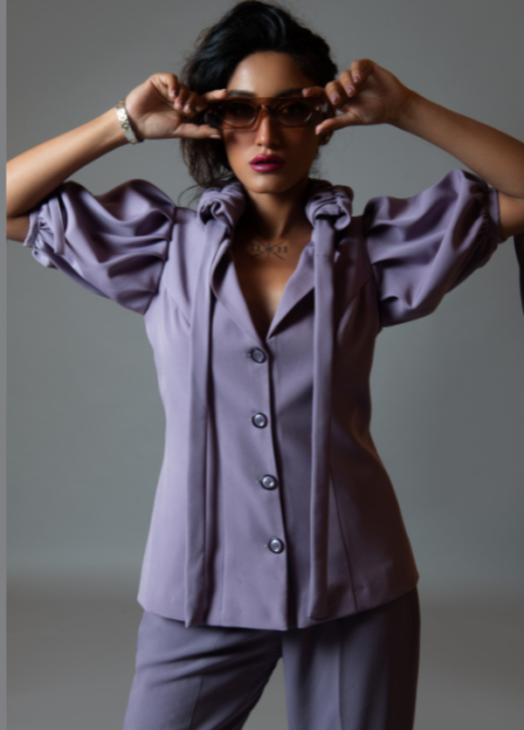 Lavender Ruffle Collar Coord Set