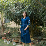Crafted from luxurious fabric, the dress drapes effortlessly, ensuring both comfort and style with every wear. The front opening adds a contemporary twist, creating a sense of movement and flow as you walk, while the embroidered sleeves add a whimsical touch of femininity.